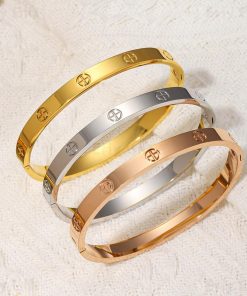 Classic Stainless Steel Zircon Bangle Gold Sliver Elegant Female Jewelry