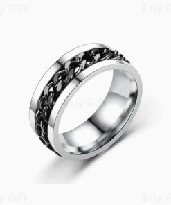 Cuban Chain Inlay Ring Polishing Stainless Steel Christmas Gift