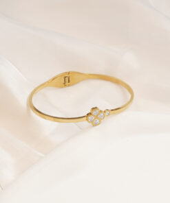 Flexible Diamond Love Four-Leaf Clover Bangle