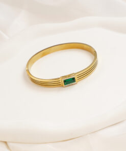 Gold Geometric Zircon-Inlaid Bangle Minimalist Jewellery