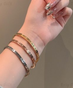 Roman Numeral Bangle Number Engraved Gold Sliver Skinny Stainless Steel