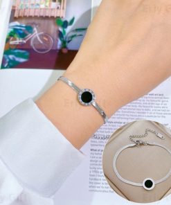 Inset Zircon Bangle Bracelets Gold Sliver Classic Waterproof Tarnish Resistant