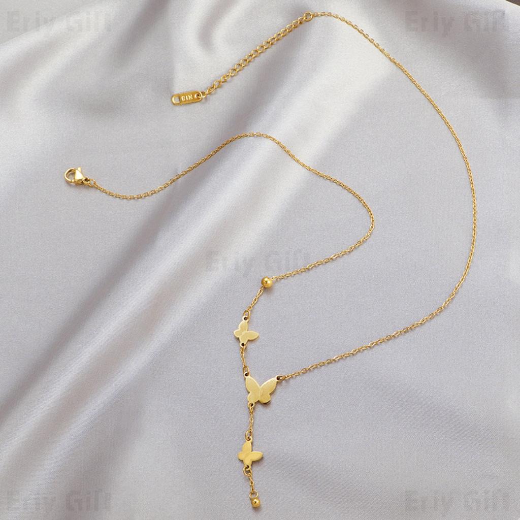 Butterfly Tassel Necklace Gold Plated Gift For Daughter Wife Her
