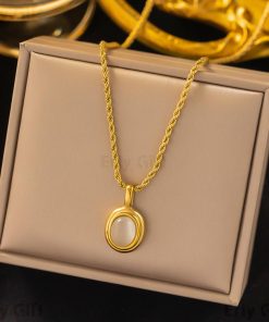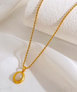 White Natural Agate Pendant Necklace 18K Gold Plated Delicate