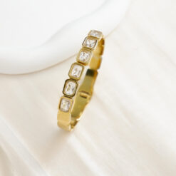 Classic Square Stainless Steel Zircon Inlaid Bangle for Women