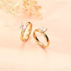 Classic Zircon Inlaid Couple Rings Wedding Band