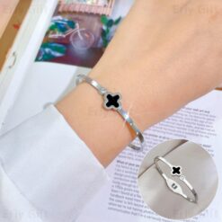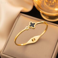 Clover Bangle Mother Of Pearl Stainless Steel Friend Gift Her
