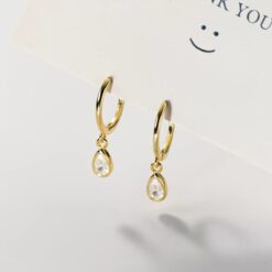 Colorful Waterdrop Stone Pendant Hoop Earrings Delicate Jewellery