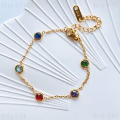 Colorful Zircon Bracelet 18K Gold Plated Stainless Steel Jewelry For Women