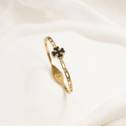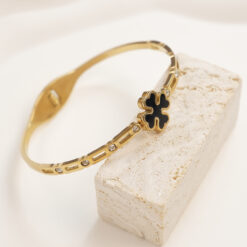 Dainty Black Enamel Heart Four-leaf Clover Bangle