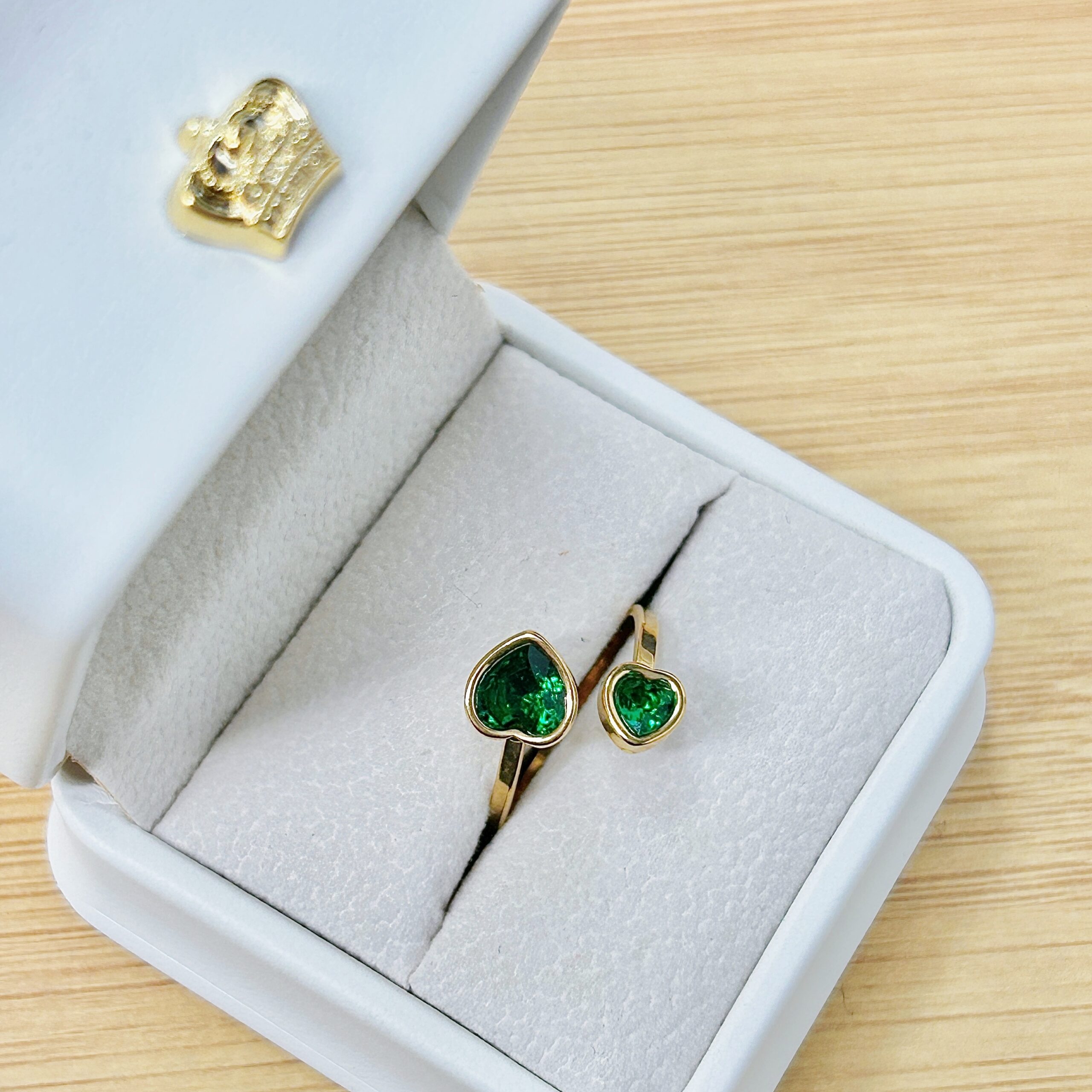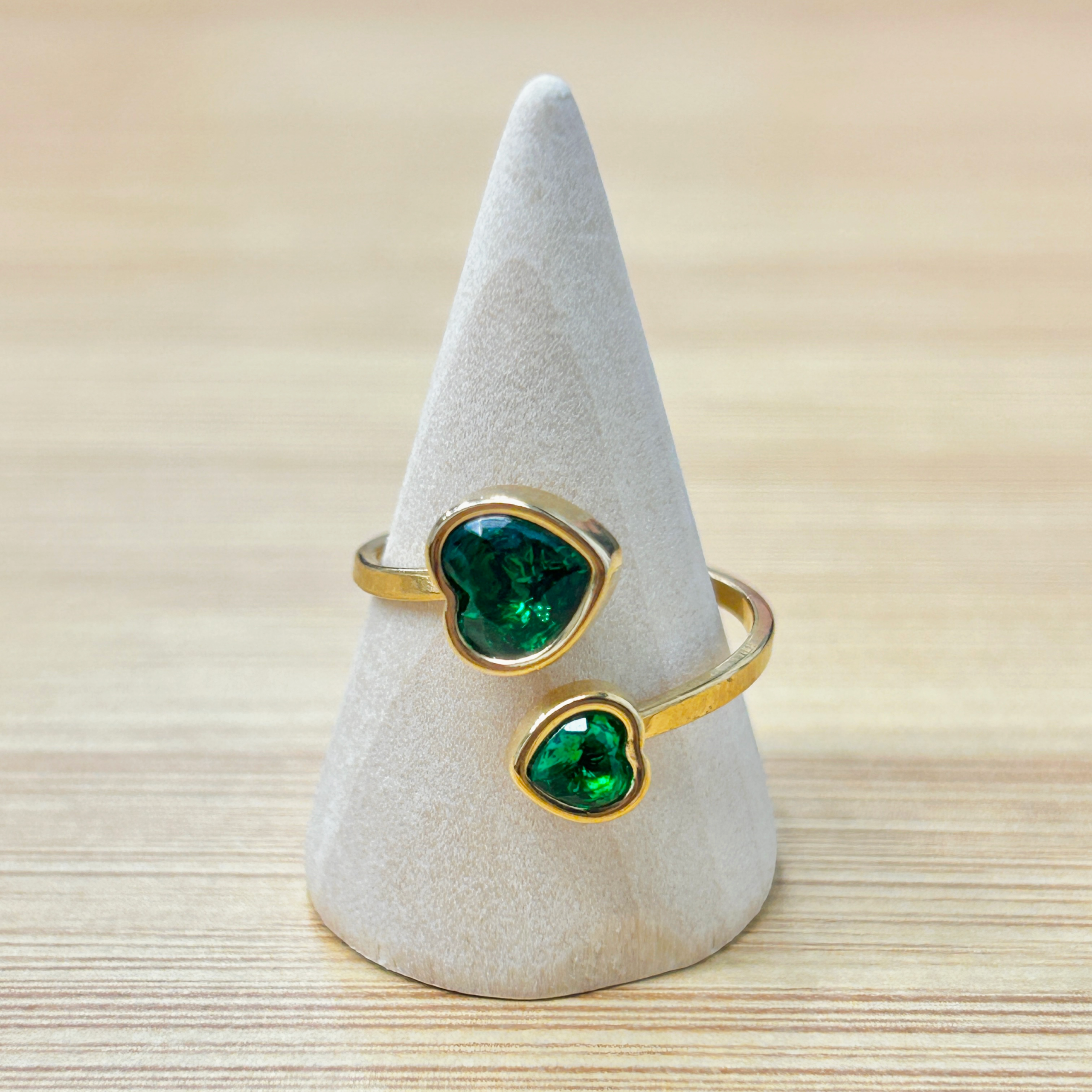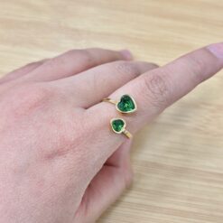 Delicate Double Green Heart Adjustable Gold Ring