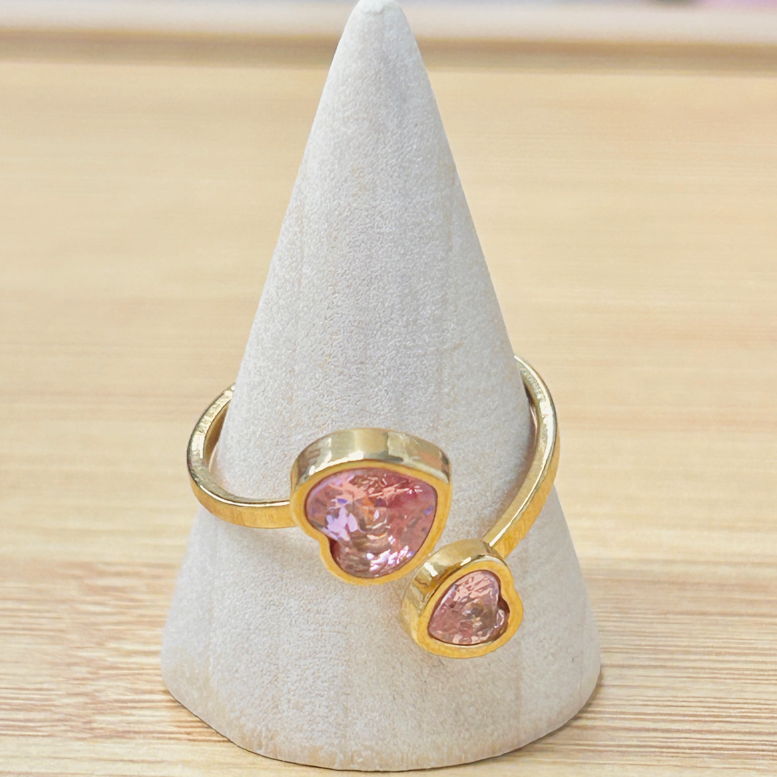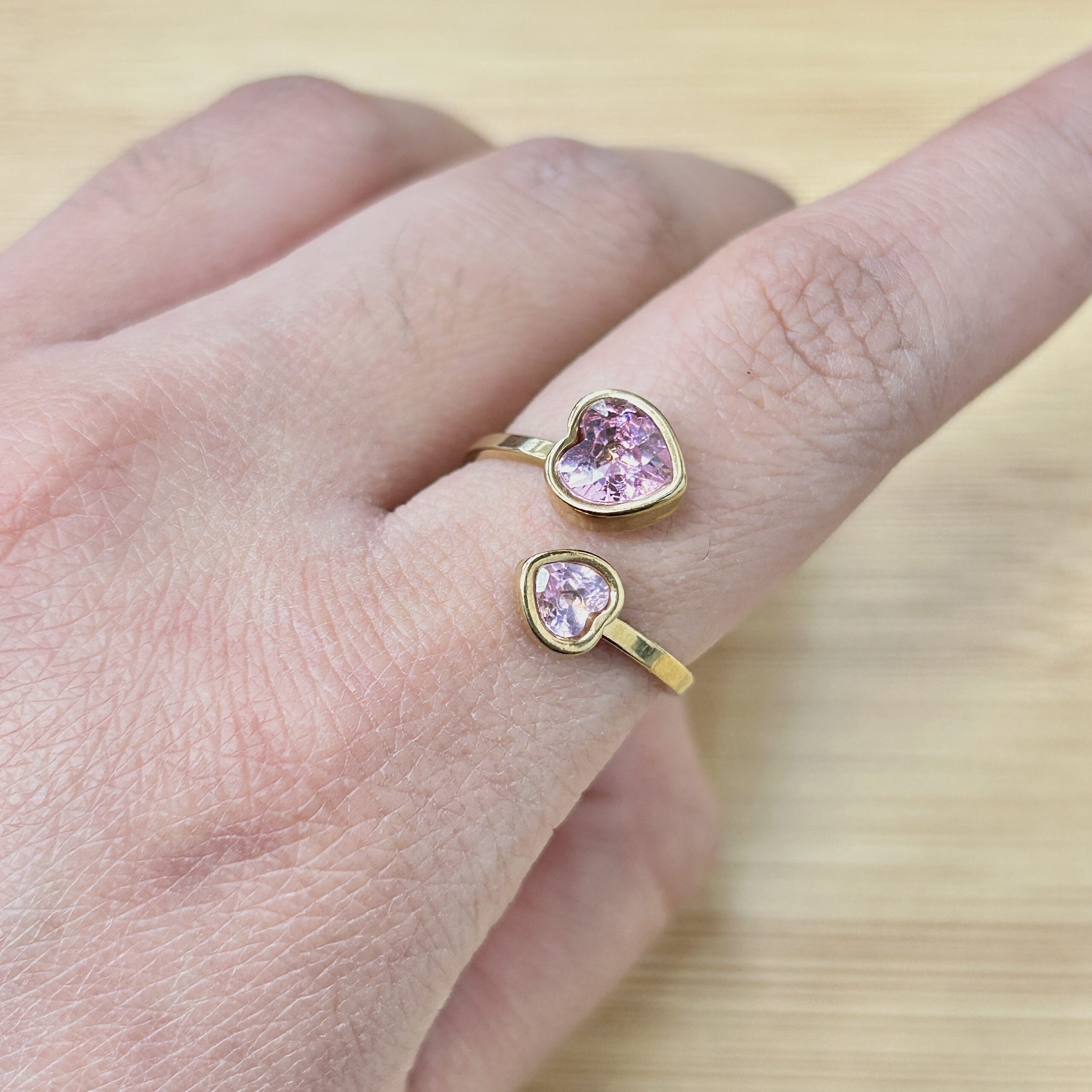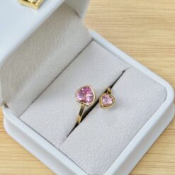 Delicate Double Pink Heart Adjustable Gold Ring