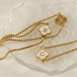 Four Leaf Clover Initial Bracelet Lucky Charm Bridesmaid Jewelry