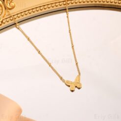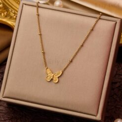 Gold Beads Chain Butterfly Pendant Necklace Animal Dainty Gift