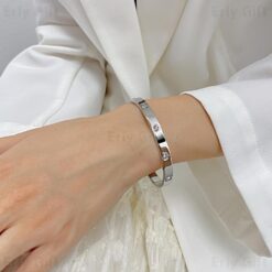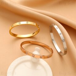 Inset Zircon Bangle Bracelets Gold Sliver Classic Waterproof Tarnish Resistant