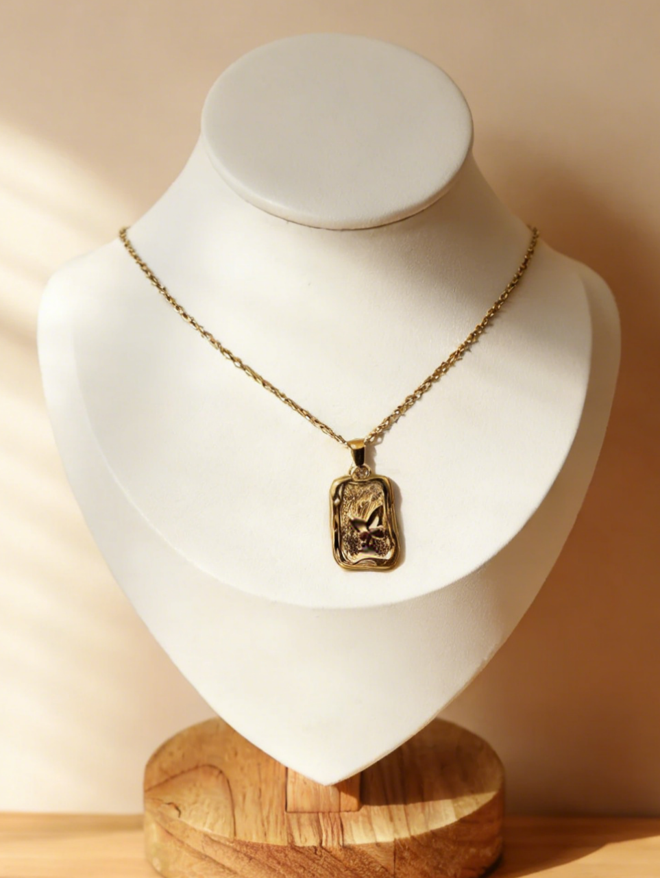 Irregular Rectangle Butterfly Gold Pendant Necklace