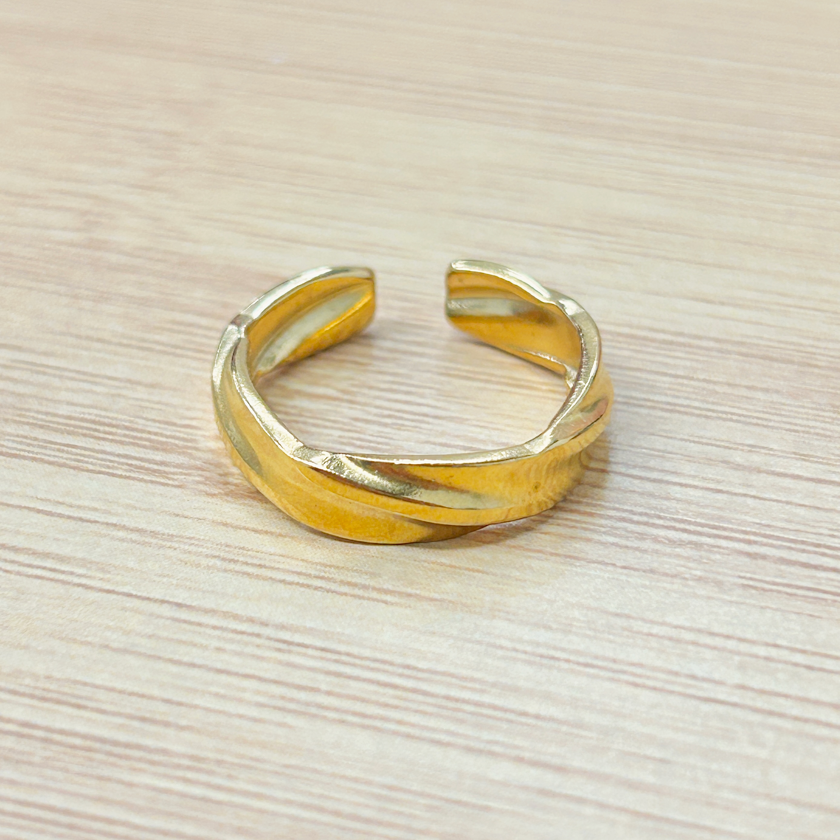Minimalist Gold Textured Twist Adjustable Ring