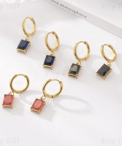 Multi Color Cubic Zircon Pendant Hoop Earrings Valentines Gift
