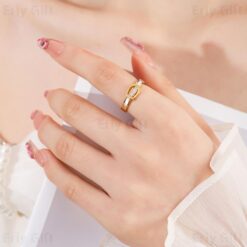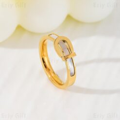 Pearl Shell Buckle Ring 18K Gold Plated Stainless Steel