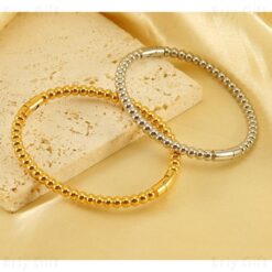 Round Ball Beaded Bangle Waterproof Jewelry Non Tarnish