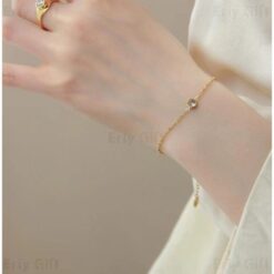 Round Zircon Chain Bracelet Gold Sliver Dainty Gift