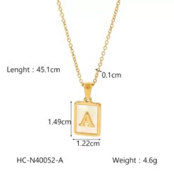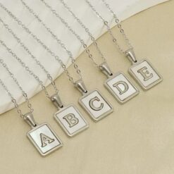 Be the first to review “Gold Plated Rectangle Shell Letter Necklace” Cancel reply
