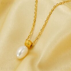Single Ellipse Pearl Pendant Necklace Daily Jewelry For Sister