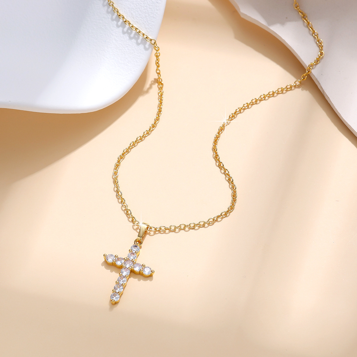 Sparkling Micro Pave Zirconia Gold Cross Necklace