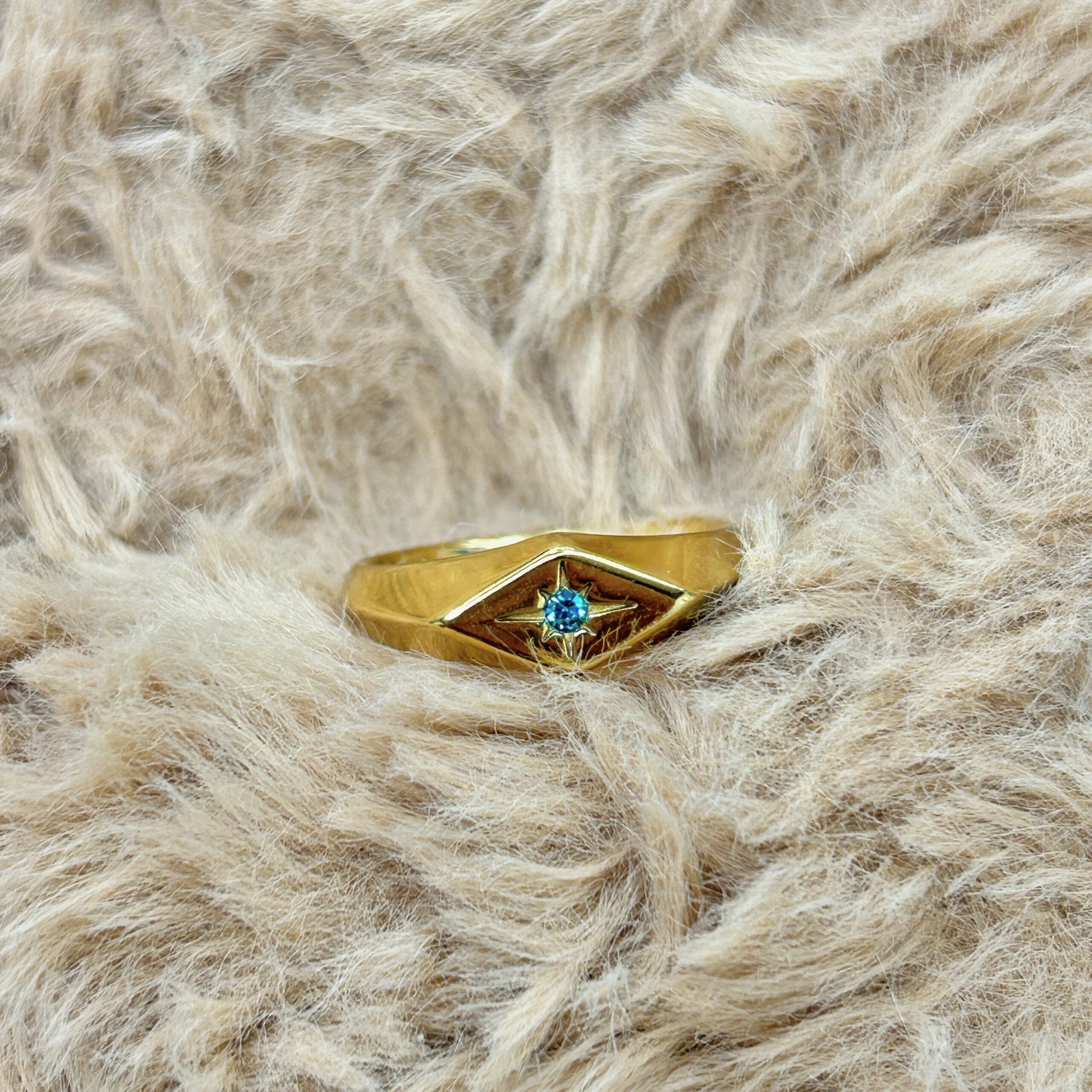 Star Engraved Blue Gem Gold Signet Ring